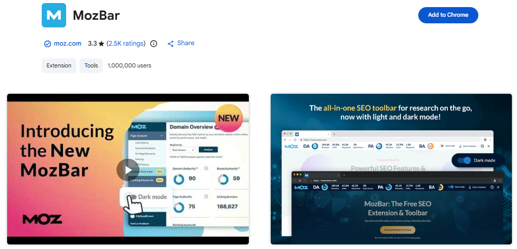 MozBar is often considered one of the best SEO Chrome extensions for link analysis and authority tracking.