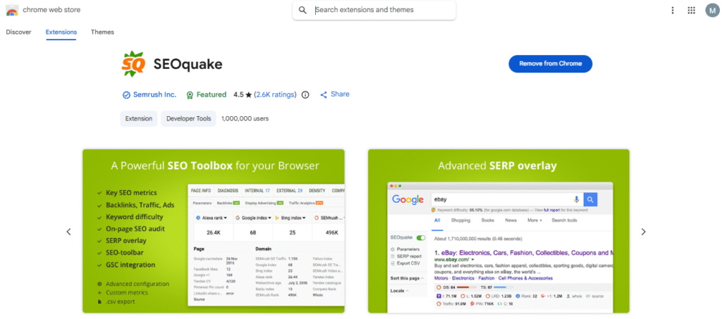 SEOquake is useful for quick site checks and competitive research without leaving the browser.
